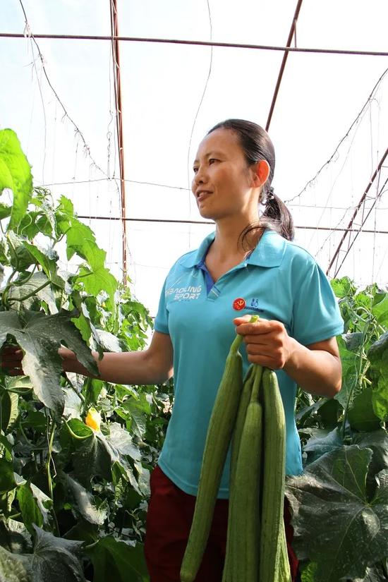 2013年,朱广兰考察发现丝瓜采摘期长、市场需求大、价格较高,但因种植技术要求高,周边种植的人较少。朱广兰下定决心开始种植丝瓜,一边学习种植技术一边实践。当年,她仅靠销售丝瓜就收入8万元,引得周边县乡种植户纷纷来参观取经。这一年,她承包的5座蔬菜大棚和1座葡萄大棚收入20多万元,彻底摘掉了“穷帽子”。