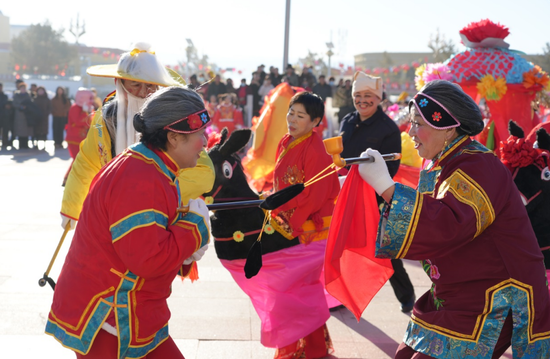 舞龙、舞狮、跑旱船、扭秧歌、大头娃娃等轮番上演,锣鼓喧天、热闹非凡,社火的氛围不断高涨,围观的群众越来越多,纷纷拍照打卡留念,活动现场充满了浓浓的年味。(李全山)