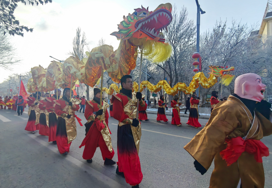 当日,第九师一六七团举办“巳巳如意闹元宵”社火活动,为团场职工群众献上了一场精彩纷呈的民俗文化盛宴,共同感受传统民俗文化的独特魅力。(方娜 郭建军)