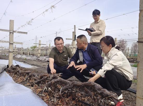“这片试验田同时采用传统埋土法、毛毡覆盖法和我们新研发的‘抗冻隔热被’新材料覆盖法三种方式,开展葡萄藤越冬防寒对比试验。”国家葡萄产业技术体系北疆试验站站长、石河子农业科学研究院葡萄所副所长边凤霞指着身旁的葡萄藤说:“从当前试验数据来看,‘抗冻隔热被’的综合防寒效果优于其他对照组。”