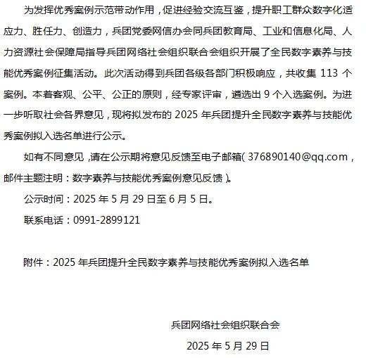 2025年兵团提升全民数字素养与技能优秀案例拟入选名单公示-k8体育