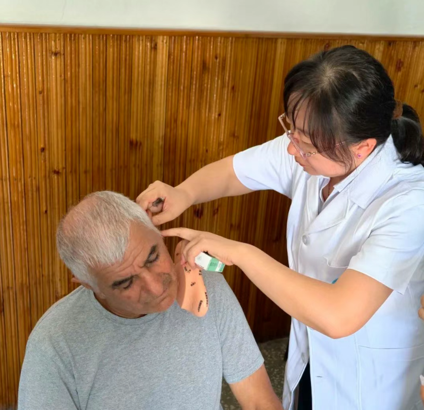 7月3日至4日,来自新疆生产建设兵团医院的中医专家团队在吉开展中医药健康科普和宣传演示活动,通过推拿、耳穴压豆、杵针疗法、火龙罐等传统中医特色疗法,为在吉华人华侨和当地民众提供特色中医药服务,尤其针对当地常见关节疼痛、失眠等病症运用了个性化中医干预方案。