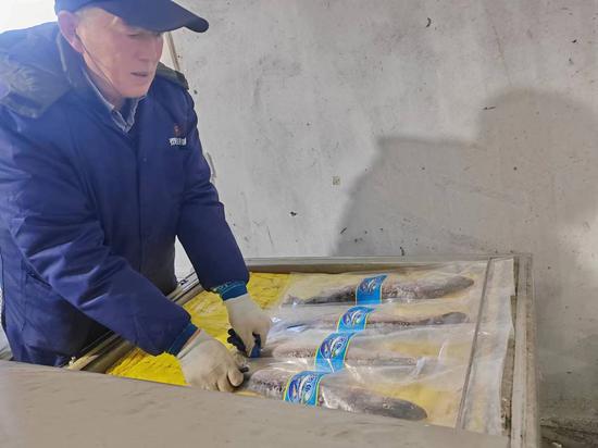 中新网兵团新闻12月14日电(张丽 王宏军)随着一场雪花飘落,新疆生产建设兵团第十师一八八团鱼产养殖户每天忙着接疆内外客商预订冷水鱼电话,工人们忙着将冷水鱼装袋、打包。微信圈、抖音直播间等煤体也在不间断地为销售冷水鱼“热身升温”,冷水鱼“出圈”后带来的“热经济”让团场水产养殖户们个个喜笑颜开。