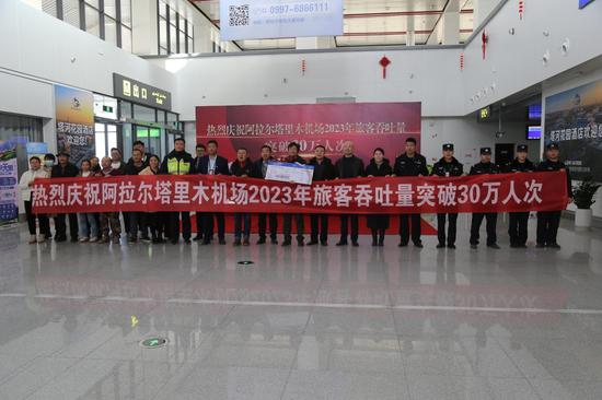 中新网兵团新闻1月2日电(戚亚平 肖嘉伟 郑亮)2023年12月29日16时,在新疆阿拉尔塔里木机场,随着长龙航空公司gj8164航班的起飞,阿拉尔塔里木机场迎来激动人心的时刻——2023年旅客吞吐量突破30万人次,标志着阿拉尔塔里木机场提前7年实现规划年(2030)旅客吞吐量30万人次目标任务。