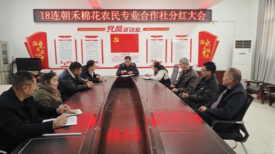 临近岁末,位于新疆生产建设兵团第一师阿拉尔市十团昌安镇十八连的阿拉尔市朝禾棉花种植农民专业合作社和阿拉尔市万发农机专业合作社迎来第二次分红。分红现场,社员数钱、签字,一派热闹景象,大家感受着收获的喜悦。