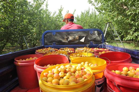 眼下,新疆生产建设兵团第一师阿拉尔市7.5万亩吊干杏进入采收季。工人忙着采摘、分拣、装箱,一派繁忙景象。