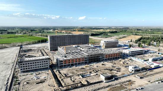 这两天,在浙江大学医学院附属邵逸夫医院新疆兵团阿拉尔医院新建项目施工现场,200多名工人正在对各单体建筑进行外墙装修施工和室内装修施工,目前已经完成工程总量的70%以上,累计完成各类投资5.8亿元。