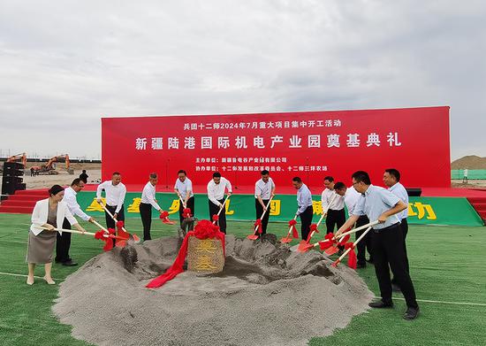 7月25日,新疆生产建设兵团第十二师2024年7月重大项目集中开工活动,在新疆陆港国际机电产业园工业地产建设项目现场举行。