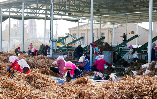 甘草加工期间,需要雇佣劳动力,从10月份开始到12月结束,2个月的时间,每名工人至少可赚取一万多元。