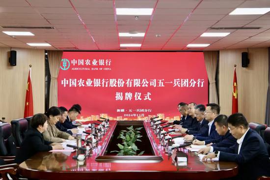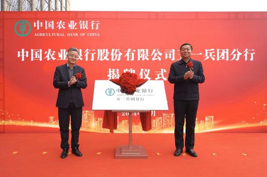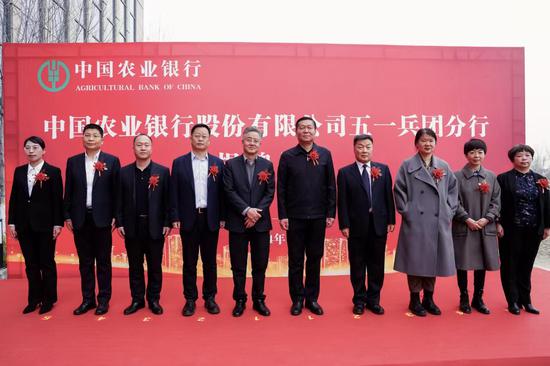 11月7日,中国农业银行五一兵团分行揭牌成立。新疆生产建设兵团第十二师党委书记、政委郝建民,兵团党委金融办、党委金融工委、兵团地方金融管理局一级巡视员王嵩青,农行新疆分行、兵团分行党委书记、行长刘明尧出席揭牌仪式并发表致辞。