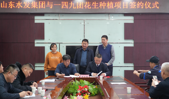1月15日,新疆徳锦科技有限责任公司总经理陈旭军代表山东水发集团有限公司与新疆生产建设兵团第八师一四九团签约10000亩花生种植项目。