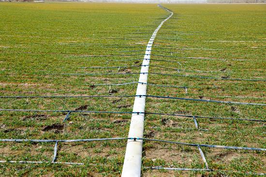 “去年冬天,我们采用小流量滴灌带做了1200亩地的示范,结果发现麦子长势很好,今年小麦单产有望提高。”二十一连连长雷用竹说。(阿迪力·艾尼)