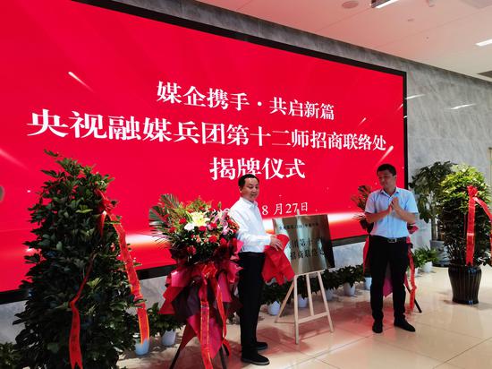 在多方见证下,央视融媒新疆生产建设兵团第十二师招商联络处近日揭牌。