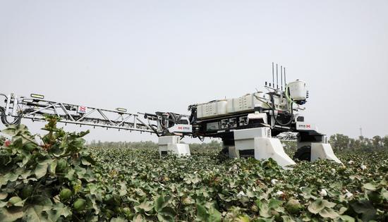 智能机器人正穿梭田间进行作业。阿迪力·艾尼 摄