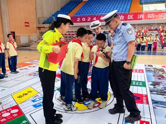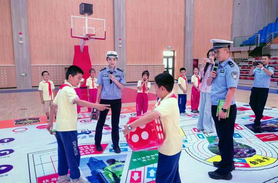 现场设置交通安全体验学习空间和趣味互动游戏区,民警组织学生参与体验闯关游戏,情景模拟道路交通场景环节,让学生身临其境学习交通安全知识。通过交通安全飞行棋游戏、交通违法行为模拟、互动答题游戏和“文明出行我倡仪”等体验活动,讲解文明乘车、文明走路安全知识、酒驾醉驾危害性,倡导安全文明出行理念,切实提升学生“知危险会避险”自我防护能力,减少事故伤害,高高兴兴上学,平平安安回家。