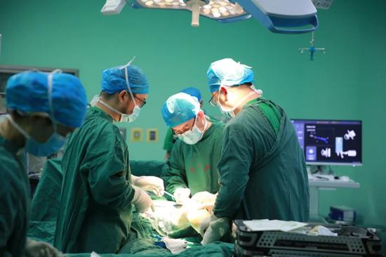 术中,汤志辉副院长主刀,欧阳国新主任和一病区毛成鹏副主任协助,为张奶奶实施了“机器人辅助下髋、膝关节置换术”。