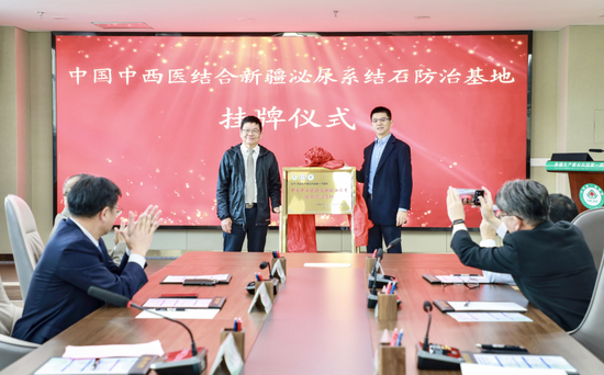 王树声和陈大进共同为“中国中西医结合新疆泌尿系结石防治基地”揭牌。