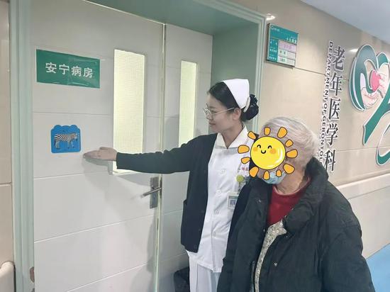 对于老年患者来说,病房相似,门口都有着相同的“长相”。细心的护士们发现:年龄偏大的患者在走廊转了一圈就找不到自己的病房了,迷茫地站在走廊中间。为此,老年医学科在病区设置卡通动物形象病房,不仅让老年患者快速辨认病房,还能帮助患者增强记忆力。