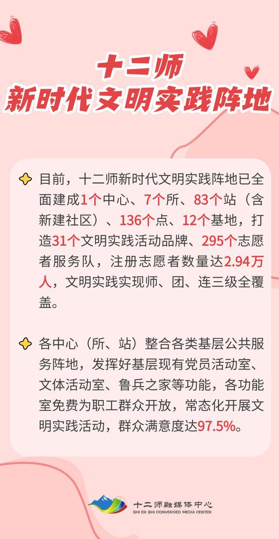 如今,新时代文明实践活动犹如阵阵清风吹遍十二师每一个角落温暖着人心、传播着文明、浸润着百姓的生活,成为最鲜亮的底色。(冯晓玲 施强 赵怡宁 游义霞 袁令令 朱玉)