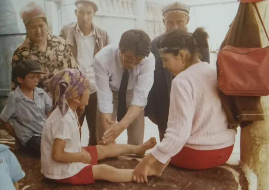 1987年9月,王东学到阿瓦提医院随访患者的照片被媒体记者定格,如今,这张照片还在兵团军垦博物馆展陈。