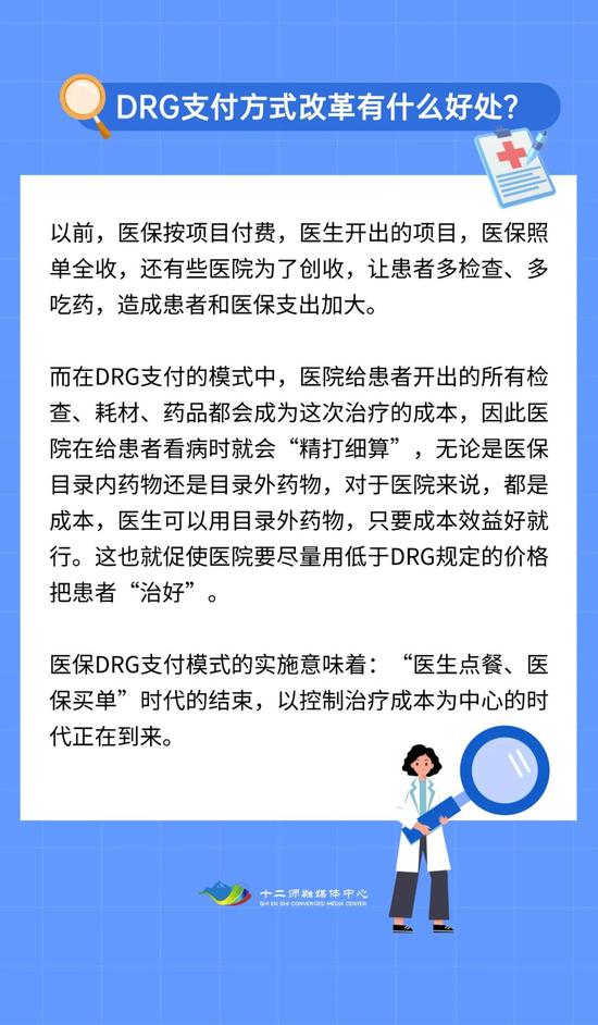 据十二师医疗保障局工作人员介绍,drg是用于衡量医疗服务质量效率以及进行医保支付的重要工具。drg实质上是一种病例组合分类方案,即根据年龄、疾病诊断、合并症、并发症、治疗方式、病症严重程度及转归和资源消耗等因素,将患者分入若干诊断组进行管理的体系。