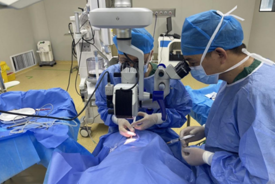 家住图木舒克市的张女士,三年前开始出现右眼渐进性视力下降,因没有明显影响生活,张女士并未重视。近几个月时间,张女士开始右眼视物模糊,并影响日常生活。经过门诊眼科医生仔细检查后发现张女士右眼视力为光感(仅能感受到光亮)、晶状体呈高度核性浑浊,白内障程度分级为c5n3p4,诊断为“右眼核硬化性白内障”,且患者有2型糖尿病20余年,伴有血糖不稳定等情况。入院后在完善各项专科检查,调整血糖至正常水平,经过详细周到的术前专家评估后,在援疆专家指导下、眼耳鼻喉科主任王登锋主刀,历时20分5秒,顺利完成新疆首例1.8mm切口下复杂白内障超声乳化抽吸术 多焦点人工晶体植入术,该手术也是新疆范围内首例1.8mm切口复杂多焦点白内障超声乳化抽吸术,此次手术的顺利完成,标志着新疆白内障超声乳化手术进入1.8mm微切口时代。