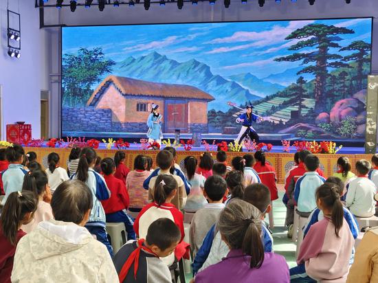 一曲《裱花》拉开了秦腔演出的帷幕,一个个精彩的节目,一段段经典的秦腔唱段相继上演,台下的学生观众不断为演员精湛的演技喝彩。