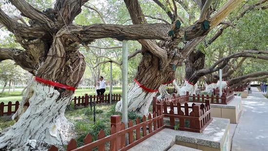 今年以来,第一师阿拉尔市组织普查小组手持测量仪,对市区树龄50年以上、有屯垦戍边历史意义的古树逐一排查,详细记录位置、树种和生长状态,建立起翔实的电子信息数据库。“目前已投资40万元,完成了阿拉尔市区329棵古树的摸排。”第一师阿拉尔市绿景市政建设服务有限公司城区建成区绿化维护服务负责人陈占洋介绍,通过消毒、干枯枝清理和围栏搭建等措施,古树存活率提升了15%。