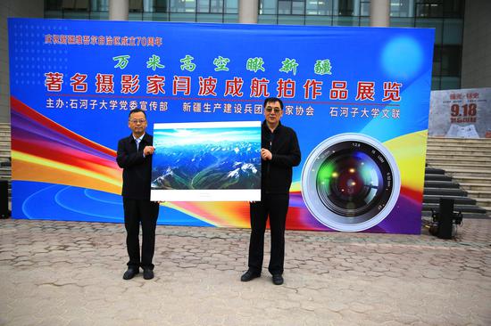近日,由石河子大学党委宣传部、新疆生产建设兵团摄影家协会与石河子大学文联共同主办的《万米高空瞰新疆——著名摄影艺术家闫波成航拍作品展》在石河子大学开幕。展览集中展出90余幅精选航拍作品,为观众呈现了一场兼具视觉冲击力与情感温度的文化盛宴。