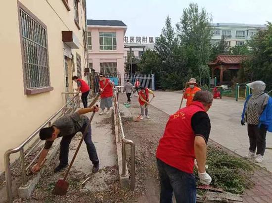 中新网兵团新闻网6月16日电(贾红刚 龚素梅 方霞)为加强社区环境卫生治理整体工作,提高社区、小区居民生活环境卫生水平,努力营造一个洁净舒适的工作、生活环境。近日,彩玉路社区新时代文明实践站联合天骄街道司法所、民政局婚姻大厅、物业公司等工作人员开展了一次“爱国卫生运动、提高人民健康水平”主题活动,对社区办公楼前后及居民活动区域进行了一次彻底的卫生整治。
