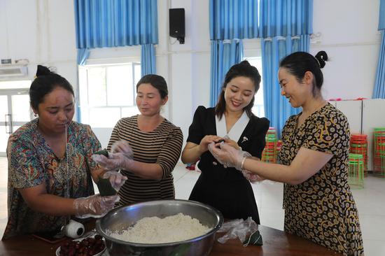 中新网兵团新闻6月23日电(罗子娴 阿孜古力·艾沙 王卓雅)为弘扬端午传统文化,促进民族团结,营造浓厚节日氛围,6月21日,新疆生产建设兵团党委宣传部驻第三师图木舒克市53团3连“访惠聚”工作队开展“民族团结‘粽’是情·传承文化铸和谐”活动。