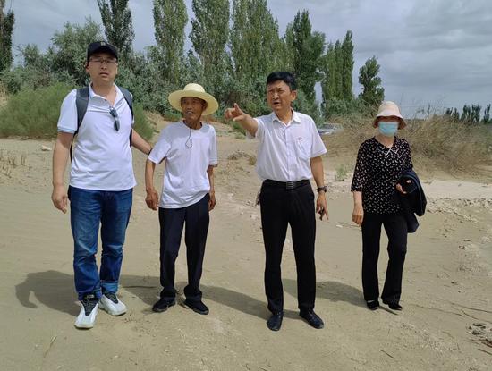 7月12日,王智谋携女儿王旭明、儿子王维明,在三十七团金山站下了火车。在田启海和杨铁军帮助下,王智谋辗转至一连,找到了父亲当年的墓地。只是,让所有人遗憾的是,因常年风沙侵袭,又遭遇数次洪水,其父王开董的墓地已深埋于黄沙之下。王智谋表示,“只要父亲泉下有知,定会原谅自己的‘不孝’”。