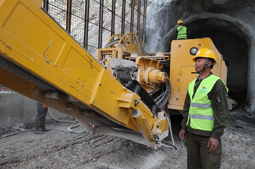 第二师三十八团二期水利工程土建第十一标段,中国水电一局项目总工董立波说:“洞内地质条件复杂,施工难度大,原计划采用爆破法进行施工,后期因为爆破施工总体工期比较长,安全和成本不易控制,项目部及时地转变思路,引进悬臂式掘进机进行施工。同时,针对设备对多变围岩条件的适应性、施工工作空间的有限性、设备高压用电的安全性等方面进行专项讨论,制定出可行性的施工方案,为设备顺利进场开钻打下坚实基础。目前,掘进机施工运行正常,日进尺达到了预期目标,成为三十八团二期水利项目洞挖施工的一大亮点。”