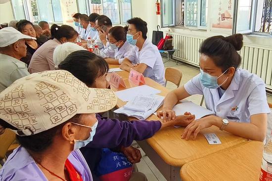 一四九团党委副书记、副政委、工会主席姜珊珊对前来义诊的专家组表示热烈欢迎,强调义诊服务地目的就是把优质医疗健康服务送到团场职工群众的家门口,切实打通职工群众看病就医的“最后一公里”。