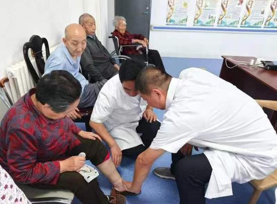 活动当天,专家组一行在一四九团社会事务办主任杨华盛、一四九团医院院长耿勇带领下走进一四九团敬老院开展爱心义诊活动,把健康和关爱送到老人们的身边。专家通过护工的介绍对老人的病情初步了解,耐心询问病史,为老人测血压,普及高血压、糖尿病等防治知识,对能当场解决的问题立即提出治疗方案,开具处方并介绍药物的用法、用量及注意事项。同时为老人答疑解惑,老人们纷纷夸赞专家服务真贴心。