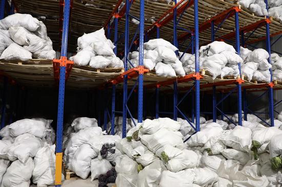 冷库内存放的水果。赵旭斌 摄中新网兵团新闻1月12日电(赵旭斌)新春将至,年味渐浓。由新疆生产建设兵团第一师供销(集团)有限公司主办的“南疆农副产品集散中心年货节”将于1月15日至2月7日在南疆农副产品集散中心农产品交易大厅举办,进一步扩大消费需求,提振消费信心,释放消费潜力,为喜迎新春营造欢乐、祥和的浓厚氛围。