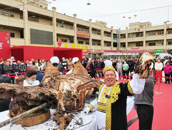 活动现场,众多民众免费品尝380公斤的特色烤骆驼,尽享饕餮盛宴,气氛十分热烈。
