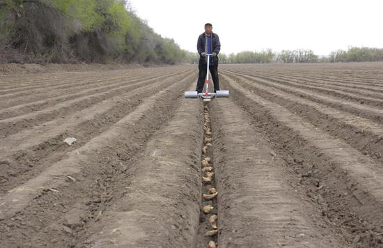 随着气温的不断回升,阿尔泰山下的一八一团垦区作物种植工作全面展开,随处可见职工们忙碌的身影。在一块生姜种植地里,一位不时走动查看每一处种植环节的汉子,他就是职工们口中所说的领路人——一八一团四连支部书记刘勇。