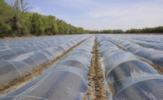 刘勇今年53岁,常年风吹日晒使他脸庞黝黑。为了确保抢抓生姜种植的有利时机,四连“两委”齐上阵,不仅带头参与生姜的种植,还组织起十几人的志愿服务队。同时,还鼓励其他连队的职工来生姜地临时务工,用自己的双手和汗水,诠释着职工对美好生活的向往。