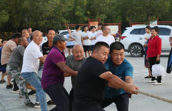 当晚9点,天气渐渐凉爽,居民群众三五成群,从四面八方前往团场文化宫门前,观看拔河比赛,拔河场地人头攒动、异常热闹。