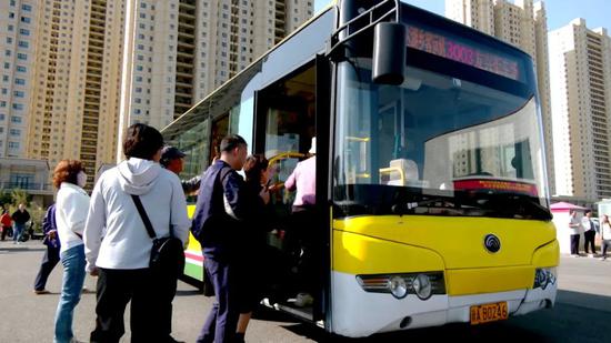 乘客纷纷登上公交车,体验首次通车的喜悦。一〇一团商户段明娟每天自驾往返于两城之间,高昂的出行成本,给她的生活带来了不少压力。