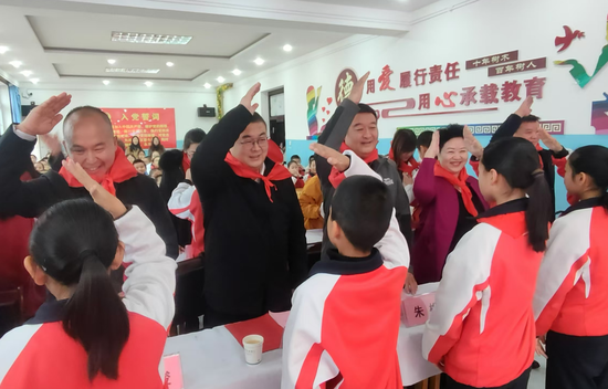 活动现场嘉宾云集,包括石河子慈善总会会长朱桦、全国“劳动模范”马惠平、一三六团党委副书记副团长陈勇、新疆硕安商贸有限责任公司总经理王志俊等众多领导与相关人员。少先队员为嘉宾佩戴红领巾,六年级同学带来《感恩的心》献词。