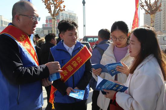 工作人员向群众宣传就业政策。