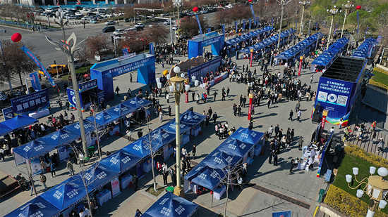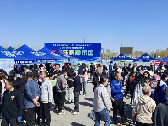 4月12日,2025年新疆生产建设兵团第七师胡杨河市“民营企业服务月”专项活动暨兵地融合招聘会在七师天北经济技术开发区举办。