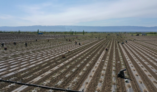 中新网兵团新闻5月13日电(方娜 关文图 郭建军)连日来,在新疆生产建设兵团第九师一六七团二连的2号地,田间里一派繁忙景象,职工正忙碌着将一株株嫩绿的辣子苗植入田间。这是该团今年重点推进的招商引资项目,标志着团场产业振兴的“辣”意画卷正式铺展。