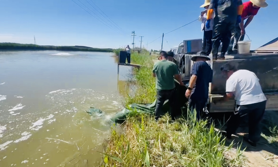 中新网新疆新闻5月21日电(张哲翔)5月21日,新疆兵团第八师一四九团1连-2条田的鱼池旁,5000尾罗非鱼苗随着水流跃入池中,溅起阵阵水花。这片鱼池面积达15亩,多年闲置,经过科学改造后焕发新生,成为职工群众增收的“新引擎”。