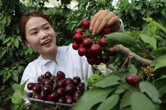 “看到朋友圈说咱们这里的樱桃熟了,特别大、特别甜、特别好吃,我就过来给父母带两盒,新鲜采摘的就是不一样!”采摘顾客肖英月欣喜地说道。
