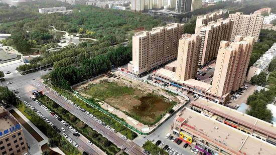 第一师阿拉尔市领航大厦建设项目建设地块。李桃 摄