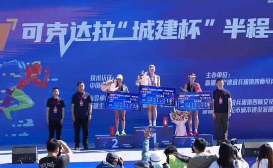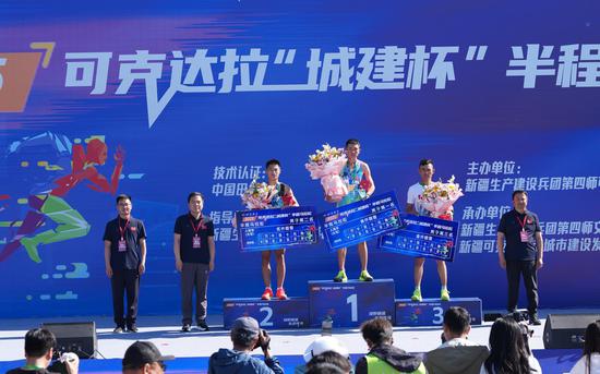 经过激烈角逐,阿合拉·加尼别克以01:11:43秒夺得半程马拉松男子组桂冠,女子组则由韩梦以01:22:05拔得头筹。