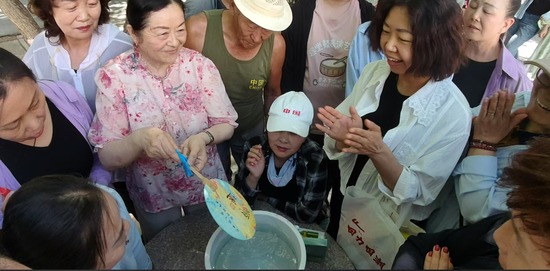 最吸睛的当数漆扇制作区。素白扇面上,老师张小宁教居民们把天然漆料滴在水桶中,利用水面彩膜描绘龙舟竞渡、粽子飘香等端午元素,传统漆艺与现代创意碰撞出独特火花。“原来漆扇制作这么讲究,我要把这幅画送给女儿!”退休职工黄文英捧着亲手绘制的漆扇,笑容比扇面的图案还要灿烂。